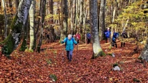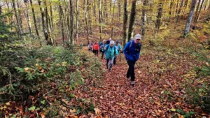 »Po jutru se dan pozna,« pravi ljudski pregovor. Ker je bilo torkovo jutro sončno, prijetno jesensko toplo, smo se nadejali prijaznega vremena in pričakovali na naši poti nekaj neznanega, a zanimivega. Na vožnji nad Želimeljsko dolino smo se ozirali po rumeno, oranžno, rjavkastem listnatem drevju, ki je barvalo pokrajino. Že na poti smo se seznanili, da je hrib, kamor smo namenjeni, imenovan Gora (750 m), in je v srednjem veku služil kot »ognjeni telefon«, da je sosednjim krajem z gorečimi kresovi naznanjal bližajočo se turško vojsko, ki je ropala, požigala in na silo odvzemala zdrave dečke jokajočim staršem. Stlačili so jih v majhne košare in jih obesili na bosanske konjičke ter jih odpeljali na turška ozemlja, kjer so jih vzgajali za najbolj krvoločne vojake-janičarje. (Ivo Andrić) Tudi to, da domačini hrib imenujejo kar Ahac, ker stoji na vrhu mogočna cerkev. Takoj se po debelih zidovih in samostoječemu zvoniku vidi, da je nekoč služila kot srednjeveška utrdba. Prvotno je stala manjša cerkev, posvečena Mariji, a so Turjaški grofje dali po letu 1593 v čast zmage nad Turki sezidati mogočnejšo, posvečeno sv. Ahacu. Pri odcepu za Veliki Ločnik smo zagrizli v hrib, da smo se izognili asfaltu in ubirali bližnjice po jesenskem gozdu; za nekatere je bilo to vzpenjanje kar naporno in prehitro.. Lepo pa se je sprehajati po šelestečem barvitem listju pod nogami, a pretijo tudi skrite nevarnosti – mokre veje ali kamenčki, ki povzročajo zdrse. Pravijo, da nesreča nikoli ne počiva. Po dobri urici in pol smo si na vrhu privoščili malico, se razgledali proti Krimu in Mokercu, nato pa se spustili po krajši poti na drugo stran, v Mali Ločnik. Zaradi večje varnosti se nismo spustili do Bajdinških slapov, ampak se odpeljali na Turjak, da si pobliže ogledamo mogočni grad, v katerem so gospodovali od 11. stoletja pa vse do druge svetovne vojne grofje Turjaški ali Auerspergi. Vsi rodovi so dali izredne vojščake, sposobne vojskovodje in vojaške voditelje. Med njimi se je zelo proslavil Andrej Turjaški leta 1593, ki je zbral mogočno vojsko in odrinil proti Sisku nad Turke, ki so prodirali preko Bosne na krščanska ozemlja. Toda pri Sisku so naleteli na iznajdljive turjaške vojskovodje na čelu z Andrejem Turjaškim, ki je onemogočil Turkom prehode preko široke in globoke reke Kolpe in tako preprečil napredovanje turške vojske. Viri pravijo, da je na tisoče Turkov ostalo v mrzli Kolpi. To je bila bitka, ki je ustavila Turke za vedno. Turjaški so podpirali tudi protestantsko gibanje na Slovenskem in tako nudili zatočišče Primožu Trubarju in Juriju Dalmatini pred proti reformatorjem. Jurij Dalmatin je v majhni skriti sobici nekje sredi gradu v miru prevajal Biblijo v takratni slovenski jezik. Kajti »lubi Slovenci« naj bi poslušali božjo besedo v domačem, razumljivem jeziku. V času druge svetovne vojne je grad doživel usodo mnogih gradov, saj je bil leta 1943 požgan. Ostale so ruševine, ki so jih sicer potomci Auerspergov po denacionalizaciji dobili nazaj, a jih niso želeli ohraniti. Država Slovenija je grad odkupila in ga bogato obnavlja. Zvedeli smo, da bo leta 2026 v mesecu juliju svečano odprtje. Pohvalimo se lahko, da smo bili celo povabljeni na odprtje. Ne glede na gradbišče so nam dovolili, da smo si pogledali »onemoglo« staro, a zelo opevano grajsko lipo, pod katero so se hladili grajski in sklepali ženitne pogodbe. France Prešeren pa jo je preimenoval v hrast zaradi pesniške svobode v baladi Turjaška Rozamunda, ki smo jo v celoti zrecitirali. Tako smo naš s čudovitim jesenskim soncem obsijan torek s »temno liso in grenkim priokusom« na koncu (saj veste, zakaj gre…) zaključili s poezijo. Zapisala: Elica Brelih Slike: Željko Jadanič