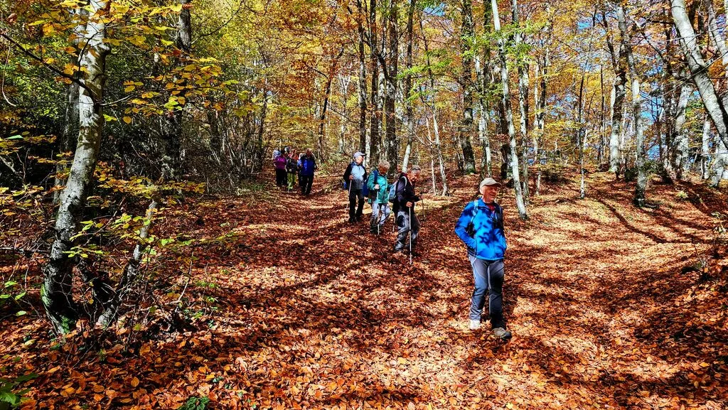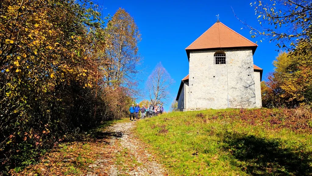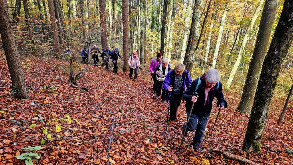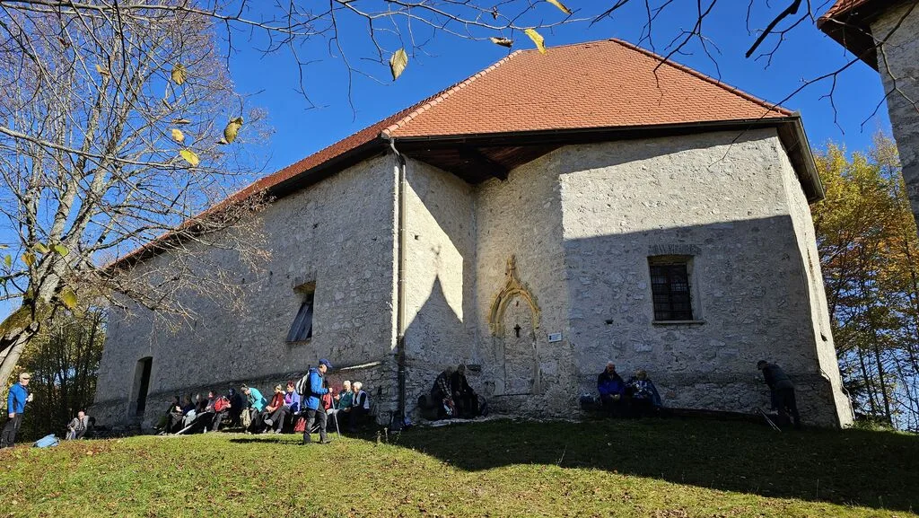 »Po jutru se dan pozna,« pravi ljudski pregovor. Ker je bilo torkovo jutro sončno, prijetno jesensko toplo, smo se nadejali prijaznega vremena in pričakovali na naši poti nekaj neznanega, a zanimivega. Na vožnji nad Želimeljsko dolino smo se ozirali po rumeno, oranžno, rjavkastem listnatem drevju, ki je barvalo pokrajino. Že na poti smo se seznanili, da je hrib, kamor smo namenjeni, imenovan Gora (750 m), in je v srednjem veku služil kot »ognjeni telefon«, da je sosednjim krajem z gorečimi kresovi naznanjal bližajočo se turško vojsko, ki je ropala, požigala in na silo odvzemala zdrave dečke jokajočim staršem. Stlačili so jih v majhne košare in jih obesili na bosanske konjičke ter jih odpeljali na turška ozemlja, kjer so jih vzgajali za najbolj krvoločne vojake-janičarje. (Ivo Andrić) Tudi to, da domačini hrib imenujejo kar Ahac, ker stoji na vrhu mogočna cerkev. Takoj se po debelih zidovih in samostoječemu zvoniku vidi, da je nekoč služila kot srednjeveška utrdba. Prvotno je stala manjša cerkev, posvečena Mariji, a so Turjaški grofje dali po letu 1593 v čast zmage nad Turki sezidati mogočnejšo, posvečeno sv. Ahacu. Pri odcepu za Veliki Ločnik smo zagrizli v hrib, da smo se izognili asfaltu in ubirali bližnjice po jesenskem gozdu; za nekatere je bilo to vzpenjanje kar naporno in prehitro.. Lepo pa se je sprehajati po šelestečem barvitem listju pod nogami, a pretijo tudi skrite nevarnosti – mokre veje ali kamenčki, ki povzročajo zdrse. Pravijo, da nesreča nikoli ne počiva. Po dobri urici in pol smo si na vrhu privoščili malico, se razgledali proti Krimu in Mokercu, nato pa se spustili po krajši poti na drugo stran, v Mali Ločnik. Zaradi večje varnosti se nismo spustili do Bajdinških slapov, ampak se odpeljali na Turjak, da si pobliže ogledamo mogočni grad, v katerem so gospodovali od 11. stoletja pa vse do druge svetovne vojne grofje Turjaški ali Auerspergi. Vsi rodovi so dali izredne vojščake, sposobne vojskovodje in vojaške voditelje. Med njimi se je zelo proslavil Andrej Turjaški leta 1593, ki je zbral mogočno vojsko in odrinil proti Sisku nad Turke, ki so prodirali preko Bosne na krščanska ozemlja. Toda pri Sisku so naleteli na iznajdljive turjaške vojskovodje na čelu z Andrejem Turjaškim, ki je onemogočil Turkom prehode preko široke in globoke reke Kolpe in tako preprečil napredovanje turške vojske. Viri pravijo, da je na tisoče Turkov ostalo v mrzli Kolpi. To je bila bitka, ki je ustavila Turke za vedno. Turjaški so podpirali tudi protestantsko gibanje na Slovenskem in tako nudili zatočišče Primožu Trubarju in Juriju Dalmatini pred proti reformatorjem. Jurij Dalmatin je v majhni skriti sobici nekje sredi gradu v miru prevajal Biblijo v takratni slovenski jezik. Kajti »lubi Slovenci« naj bi poslušali božjo besedo v domačem, razumljivem jeziku. V času druge svetovne vojne je grad doživel usodo mnogih gradov, saj je bil leta 1943 požgan. Ostale so ruševine, ki so jih sicer potomci Auerspergov po denacionalizaciji dobili nazaj, a jih niso želeli ohraniti. Država Slovenija je grad odkupila in ga bogato obnavlja. Zvedeli smo, da bo leta 2026 v mesecu juliju svečano odprtje. Pohvalimo se lahko, da smo bili celo povabljeni na odprtje. Ne glede na gradbišče so nam dovolili, da smo si pogledali »onemoglo« staro, a zelo opevano grajsko lipo, pod katero so se hladili grajski in sklepali ženitne pogodbe. France Prešeren pa jo je preimenoval v hrast zaradi pesniške svobode v baladi Turjaška Rozamunda, ki smo jo v celoti zrecitirali. Tako smo naš s čudovitim jesenskim soncem obsijan torek s »temno liso in grenkim priokusom« na koncu (saj veste, zakaj gre…) zaključili s poezijo. Zapisala: Elica Brelih Slike: Željko Jadanič